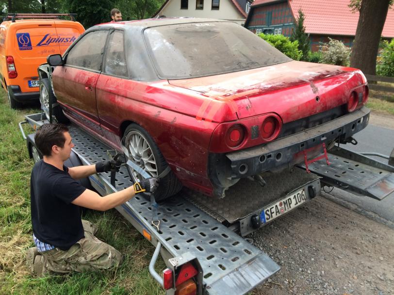 ein ehemaliger 125ps skyline mit 4loch naben und unmengen an rost.