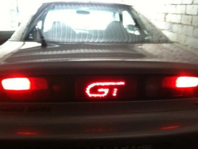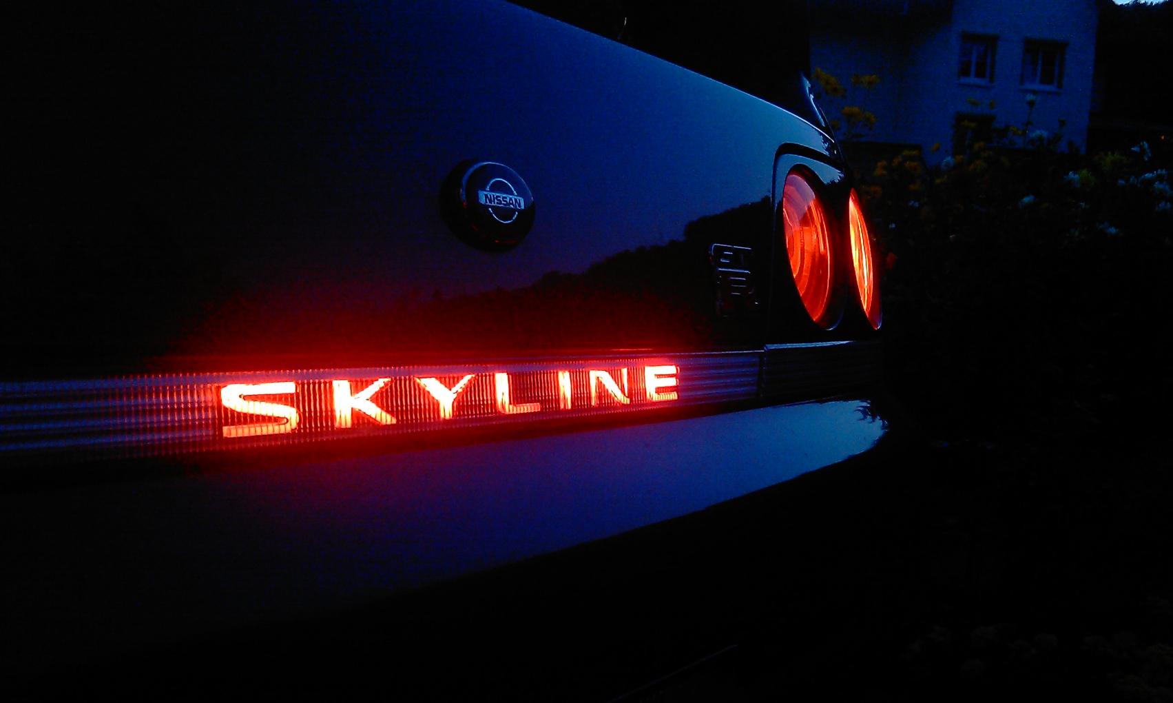 die skyline aufschrift hinten am heck die beim licht anmachen rot leuchtet