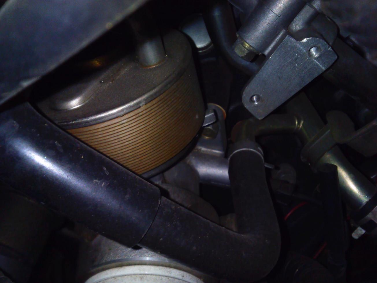Sitzt direkt an bzw. hinter der Sandwichplatte am Ölfiter.