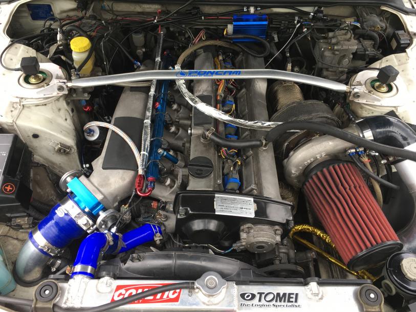 Der komplette Motor wurde von Exotic Importz standfest gebaut und mit Top Mount Borg Warner S366 Turbolader versehen.