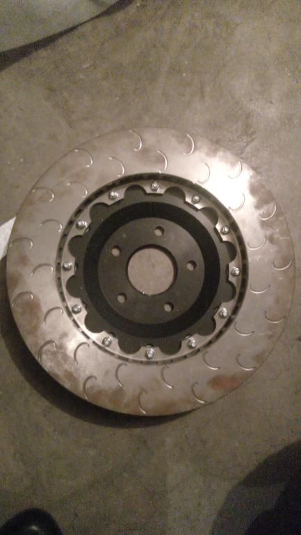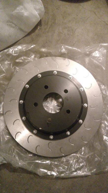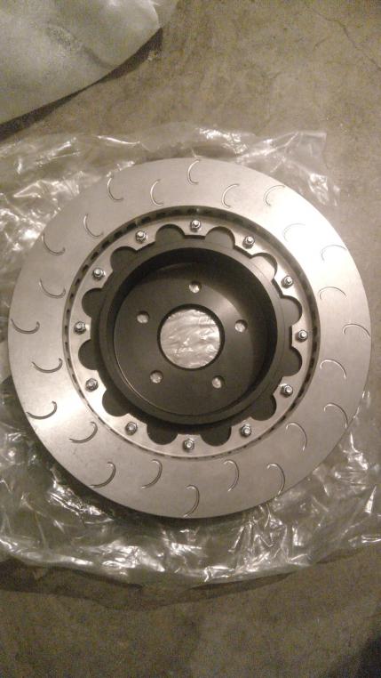 2 teilige, eloxierte, schwimmend gelagerte Bremsscheiben in 365x34mm