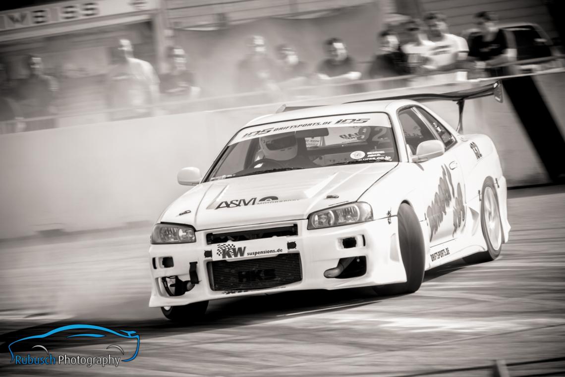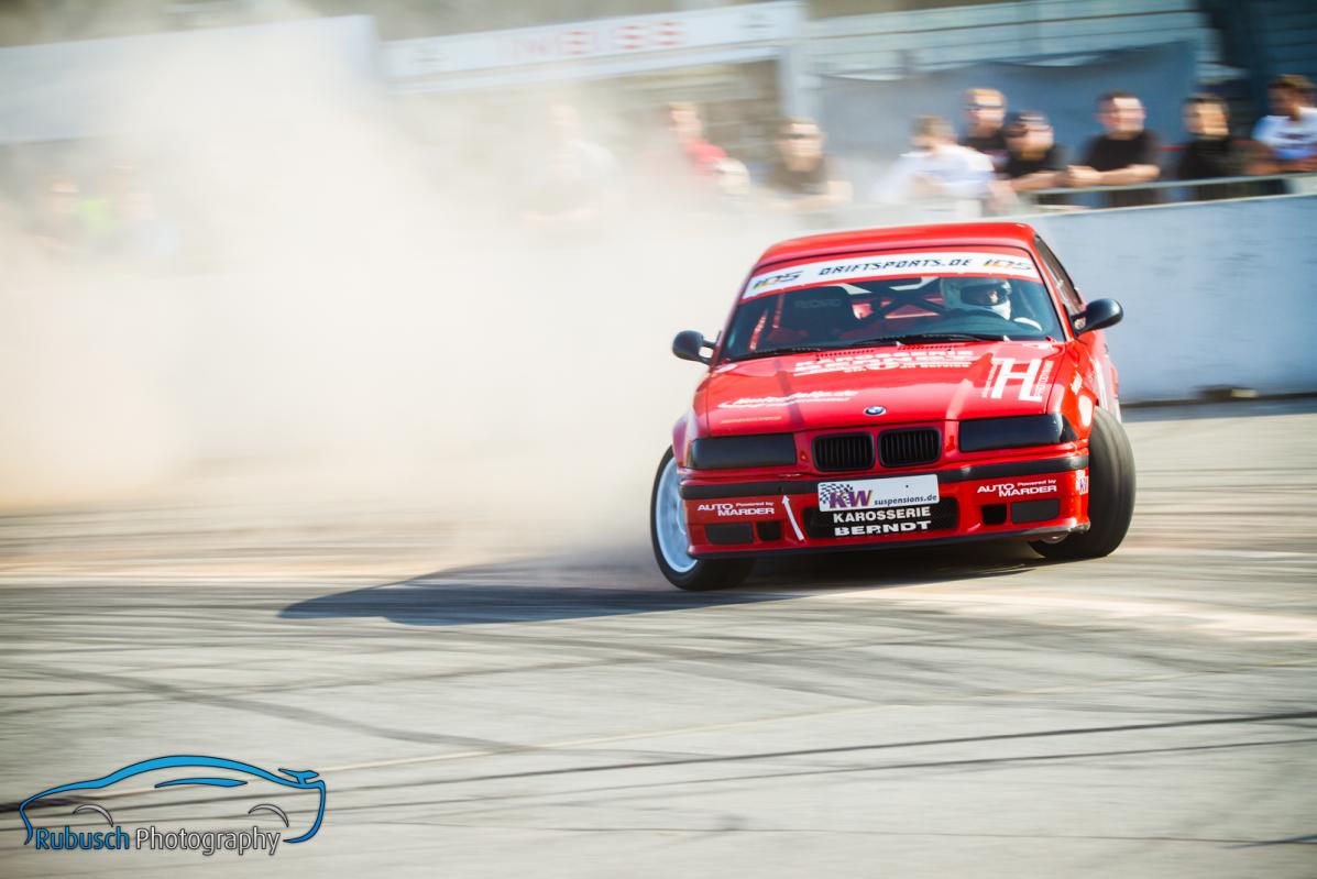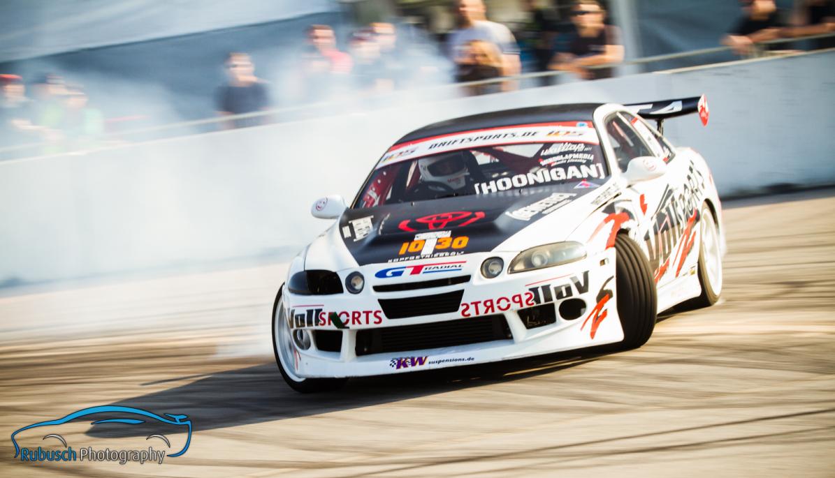 Platz 3 in der Tageswertung war nochmal ein versöhnlicher Abschluss auch wenn dieser gegen Christoph Krämer und Todor Tunev aus Bulgarien hart erkämpft werden musste. Christoph Krämer, der eine steile Karriere in der PRO-Klasse hinter und aber auch noch vor sich hat, überzeugte mit sehr souveränen Fahrstil und engen Battles. Seine Entwicklungskurve zeigt steil nach oben und er könnte sicherlich ein Kandidat für den nächsten IDS PRO-Titel werden, sofern er die Zeit und das Budget für eine komplette Saison aufbringen kann. Mit seinem Kollegen Dennis Voll (Platz 4 in der Tageswertung) und Rene Portz (ausgeschieden aufgrund, technischer Probleme) bilden die drei ein ebenfalls sehr stark aufgestelltes Driftteam mit hoher Leistungsdichte unter den Fahrern.