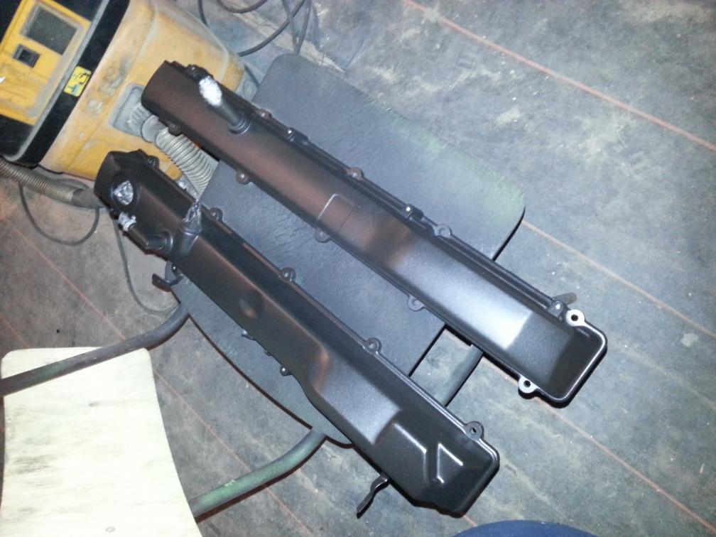 Habe dann angefangen einige teile zu lackieren um etwas die Optik hochzuschrauben... Ventiledeckel sowie der kühlwasserausgleichsbehälter, Scheibenwischer Wasserbehälter und Domstrebe sind nun matt schwarz und das Ergebnis ist der Hammer gefällt mir richtig gut...