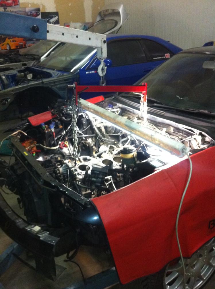 Folglich machte man sich Gedanken, ob es Sinn macht ihn so wieder zusammenzubauen… also versuchten wir zuerst einen schönen Austauschblock zu finden, leider hat das nicht geklappt… Da ich aber sowieso später ein bisschen mehr Leistung fahren wollte, entschied ich mich dazu, das gleich zu machen. Wir entschieden uns für ein direktes Mapping nach Umbau, weil wir das richtig machen wollen, obwohl man hätte vielleicht mit Glück auch so fahren können. Das Mappen sollte unserer Meinung nach von Jonne/SKY Engineering gemacht werden, denn wie wir gehört hatten sind da schon so einige RB25/6 mit 500PS über die Rolle… also sollte man Erfahrung damit haben! ;-)