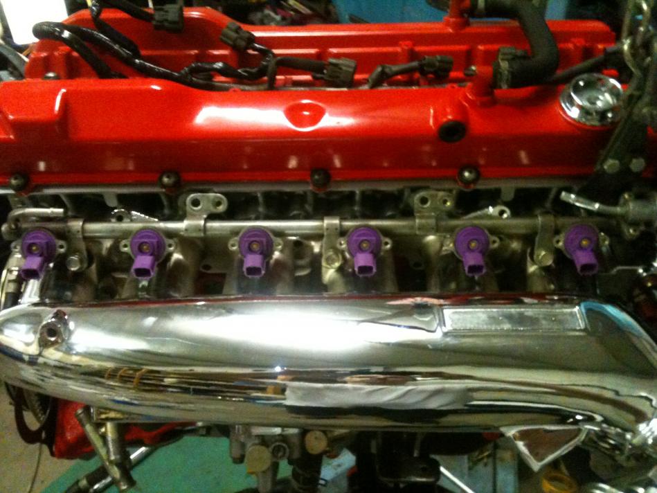 - RB25DET Kopf – Motorbauer = planen -0,1mm, Einlasskanäle stumpf polieren, Ventile neu einschleifen, Ventilspiel prüfen, neue Schaftdichtungen (Cometic), Abrücken, Dichtprüfen, Auslitern, Waschen