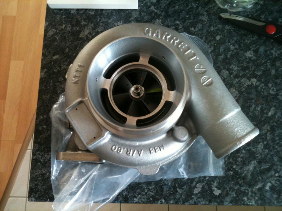 - Garrett GT3076R HF „Plug&Play-Lader“, Verdichtergehäuse 100mm Ausagung, Abgasgehäuse Garrett GT28-Gehäuse aufgebohrt, A/R 0.86, T3 Einlass, 5-loch Flansch Auslass, internes Wastegate, max. 3,0bar