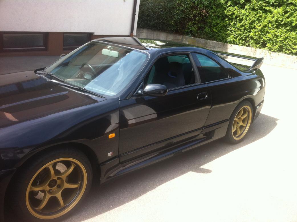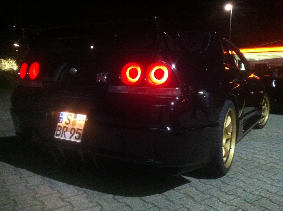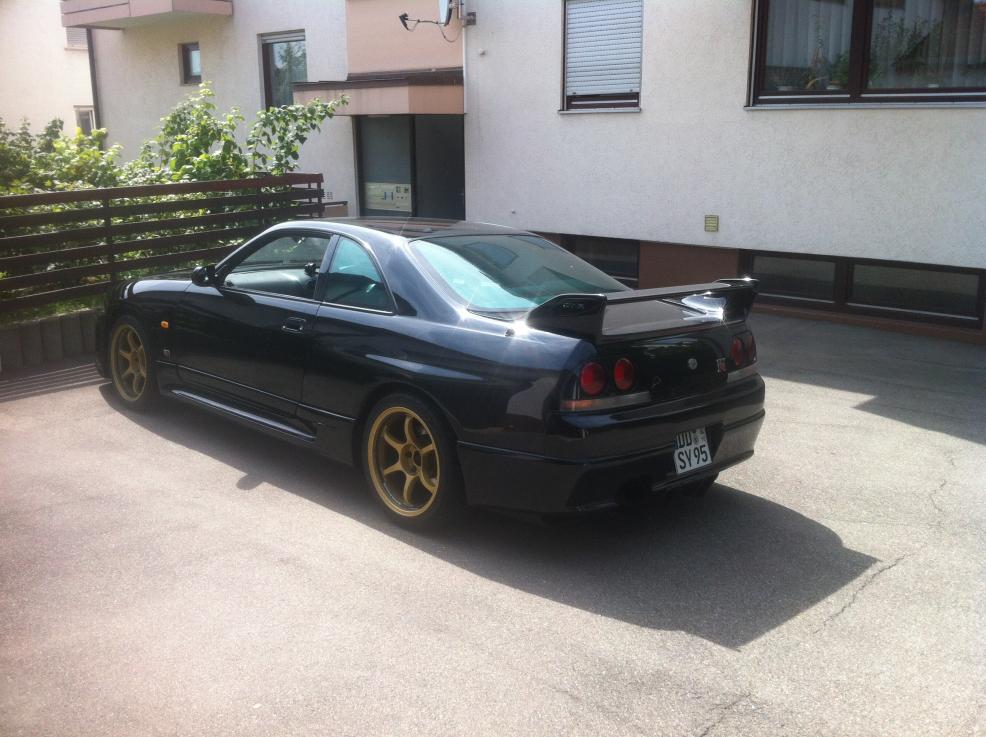 Nen Kollege von mir meinte dann, er kennt jemand der sich mit Skylines auskennt und brachte mich zum Andy. So nahmen die Dinge dann seinen lauf und nur paar Tage später saß ich im Zug nach Dresden :). Ich steige aus dem Zug aus und sehe schon die Black Pearl. EIN SCHWARZER NISSAN SKYLINE R33 GT-R mit goldenen Felgen, man hab ich Augen gemacht, war wohl liebe auf den ersten Blick :).