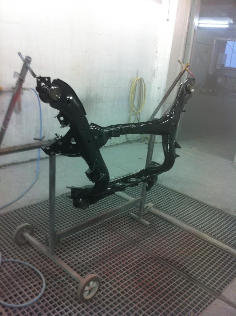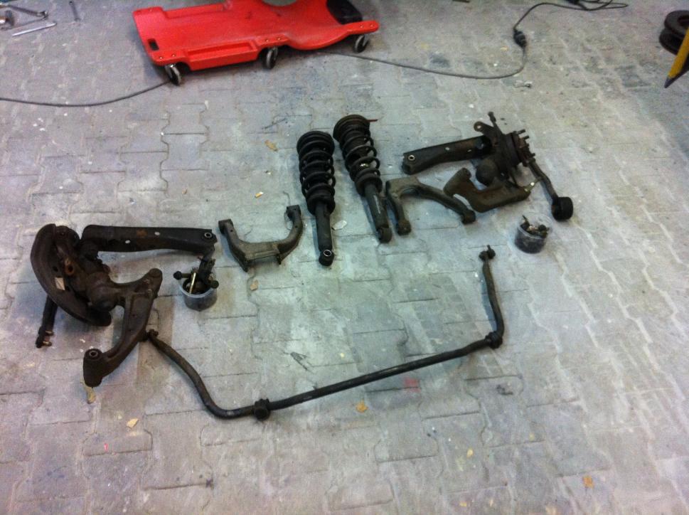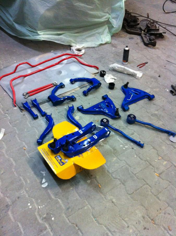 Also habe ich als erstes die gesamte Aufhängung sandstrahlen lassen, versiegelt, lackiert und alle Buchsen durch welche aus PU ausgetauscht: