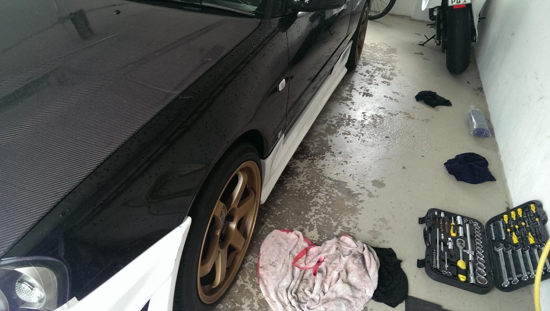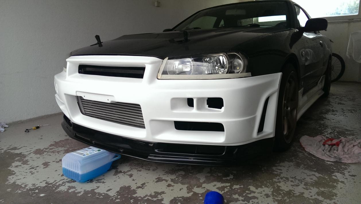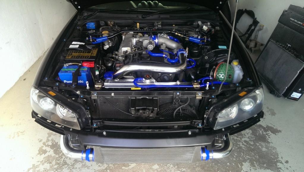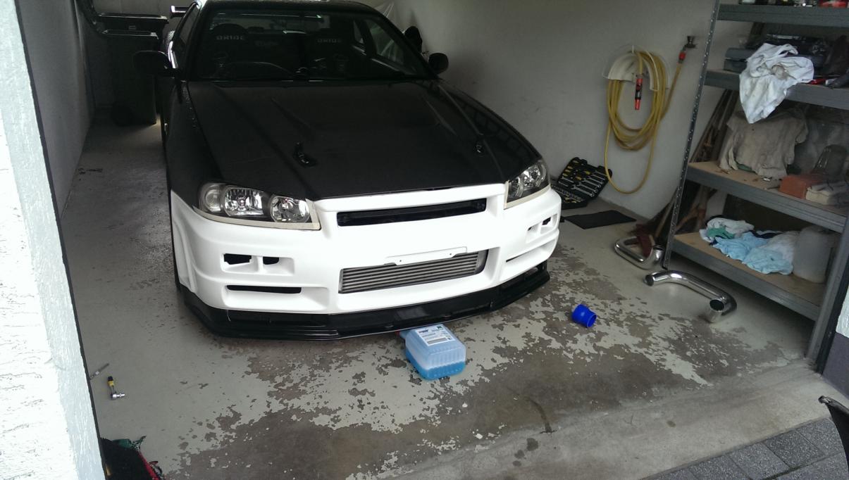 Vorteil bei mir war, das ich durch die Carbonhaube das Rohr welches vor dem Motorblock entlang geht ein Stück weiter nach oben setzen konnte. Somit musste ich nichts an den Blättern vom Viscolüfter schneiden. Dazu gibts aber am Wochenende genauere Bilder und Infos.