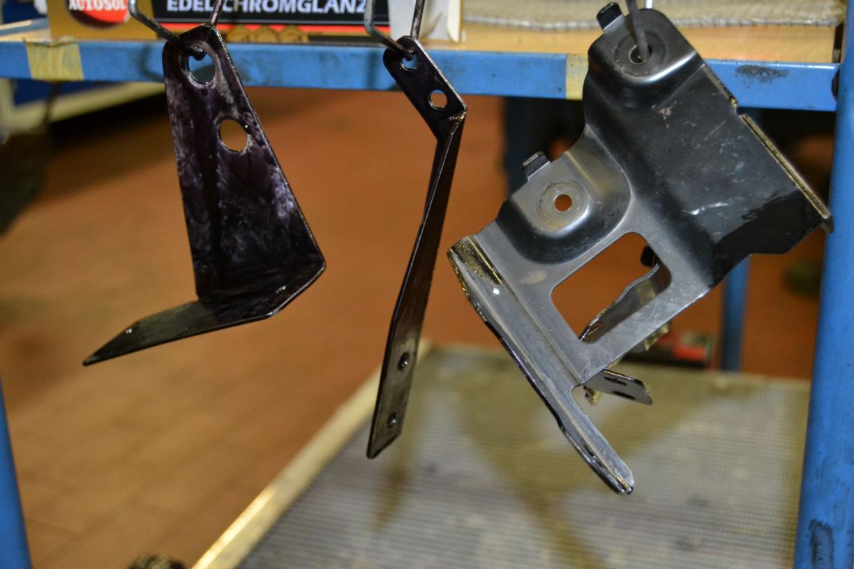 Im selben Atemzug habe ich mal alle abgebauten Metallhalter abgeschliffen und mit Brunox bepinselt. Morgen kommt dann die zweite Schicht.