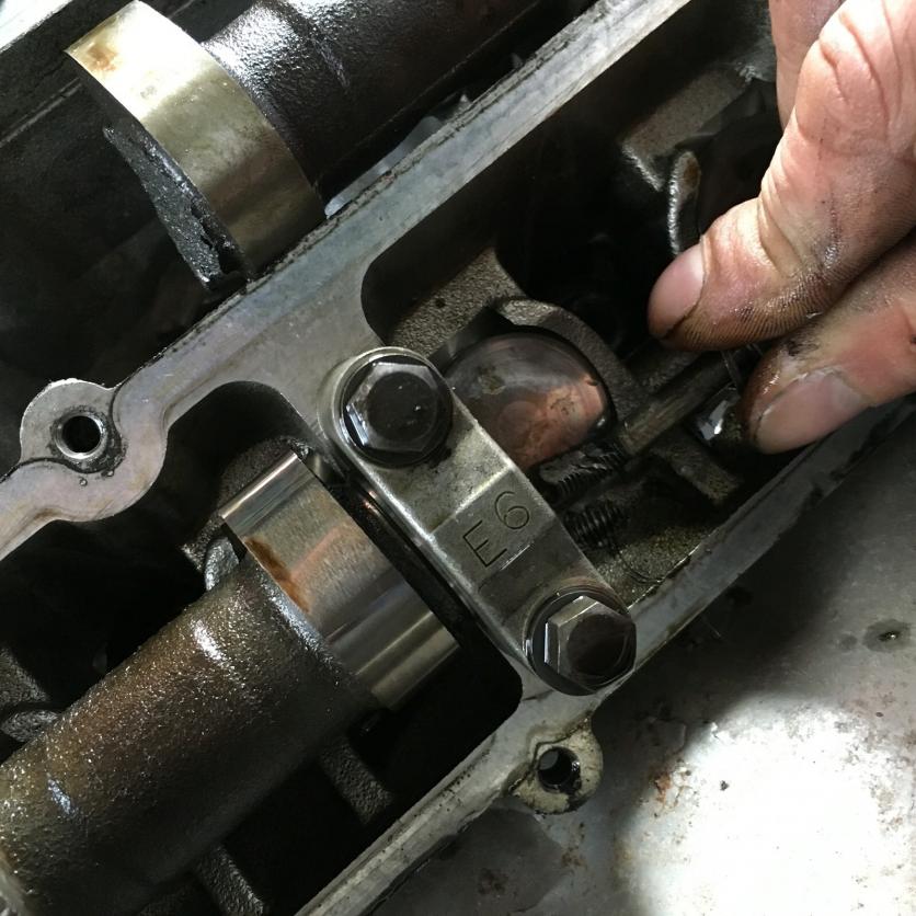 Sehr wahrscheinlich war der Motor schon einmal oben offen, wobei wohl auch die Nockenwellen entfernt wurden. Bei der Wiedermontage wurde denn vermutlich eine der Schrauben der Lagerung der Nockenwelle nicht wieder korrekt fest bzw nachgezogen, die sich dann über die Zeit und Kilometer soweit lockerte und herausdrehte, dass sie aus dem Lagerbock fiel. Die sich drehende Nockenwelle ist dann auf die freifliegende Schraube geschlagen und die hielt dieser dabei entstandenen Belastung nicht stand. Das nachfolgende Bild verdeutlicht die These denke ich ganz gut. Meine erste wirkliche Saison war damit nach nichtmal 2 Monaten gelaufen.