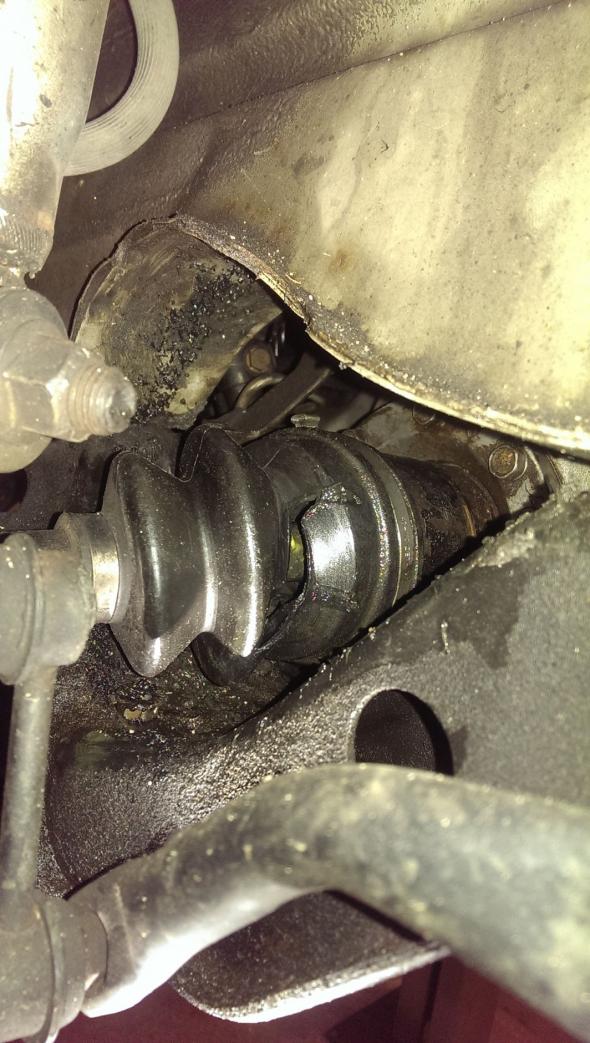 Bei einer Routinedurchsicht habe ich festgestellt, dass eine der erst 2014 bei Excotic-Importz erneuerten Manschetten der rechten vorderen Antriebswelle schadhaft war. Warumauchimmer. Kann mir nur vorstellen, dass irgendwas auf der Straße hochgewirbelt wurde. Sah aus wie aufgeschnitten. Scharfkantiges war nicht in der Nähe.