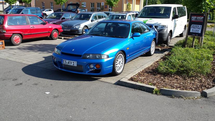 Es ist ein 1996er Nissan Skyline R33 GTS-T Spec2, blau metallic mit knapp 136.000km.
