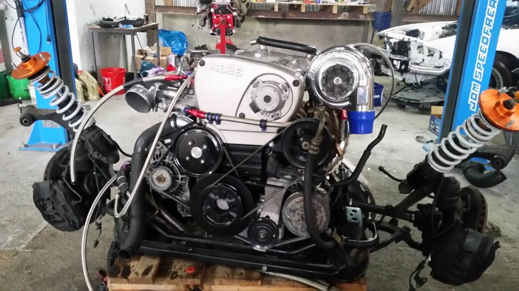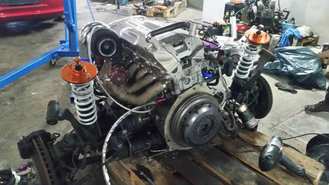 Morgen werde ich eben schnell noch den Push to Pull Converter in mein neues Getriebe setzen und dann mal schauen ob ich den Motor schräg an den Trägern vorbei gefädelt bekomme sonst muss der Turbo nochmal runter.
