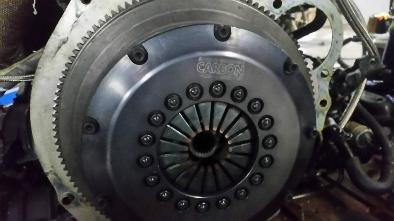 Motor sitzt auch schon wieder in der Ölwanne und die OS Giken 2 Scheiben Carbonkupplung ist ebenfalls montiert.