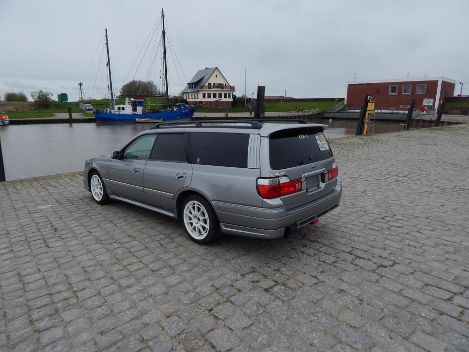 wie manchen bereits bekannt, habe mir einen Stagea gegönnt. Der Wagen steht auch zum Verkauf aber das wisst ihr ja auch. Aber da ich ihn nun auf mich angemeldet habe, dachte ich mir, darf ich ihn hier bestimmt auch vorstellen. :) Der Stagea ist ein wahres Raumwunder, ich kann ganz bequem hinten drinnen liegen. Praktisch fürs Reisbrennen, lol. :) Paar Daten und Fakten, Enkei Felgen, Gewindefahrwerk (Noname leider), MOMO Lederlenkrad, Ladeluftkühler, Turbotimer, Blitz SBC.