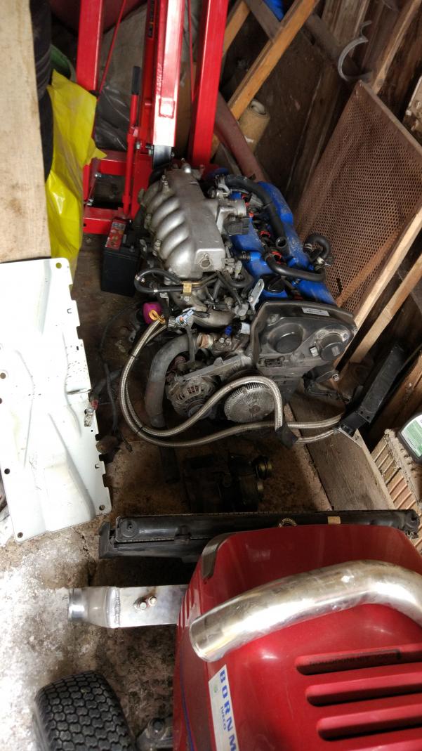 Besser gesagt, an ein angefangenes und nie zuende gebrachtes Projekt. Der Vorbesitzer hatte vor den Sky nach einem Unfall wieder aufzubauen, nahm ihn deswegen vor 2 Jahren komplett auseinander, kaufte ein Jahr später die Karosse dazu und ein weiteres Jahr später kam ich und nahm ihm alles weg