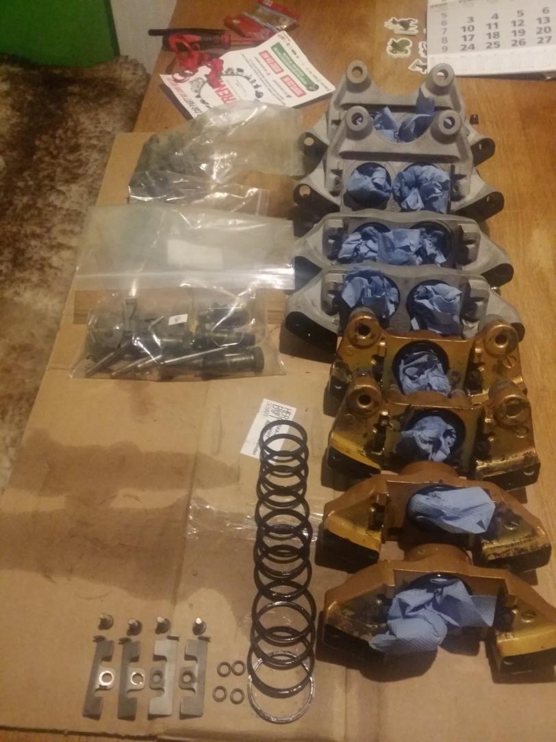 Über den Winter habe ich mich auf die Suche nach einem Bremsenupgrade gemacht. Ein BigBrake-Kit war für meine Bedürfnisse etwas zu überdimensioniert, weswegen ich mich für ein Upgrade auf R34 GTR Sättel entschieden hatte. Es dauerte auch nicht allzu lange bis ich bei einem freundlichen GTR-Fahrer aus Luxenburg fündig wurde, der gerade auf ein BigBrake-Kit umgestiegen ist. Leider habe ich seinen Namen nicht mehr in WhatsApp und ich weiß auch nicht ob er hier im Forum unterwegs ist :(