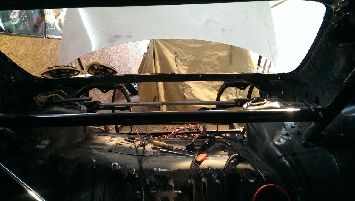 Hinten hab ich auch noch die Hutablage rausgeschnitten, das ganze Blech da hinten ist mir nur auf die Nerven gegangen und ehrlich gesagt auch sehr unnötig. Das Spritsystem ist allerdings durch eine Alubox von der Fahrgestzelle getrennt.