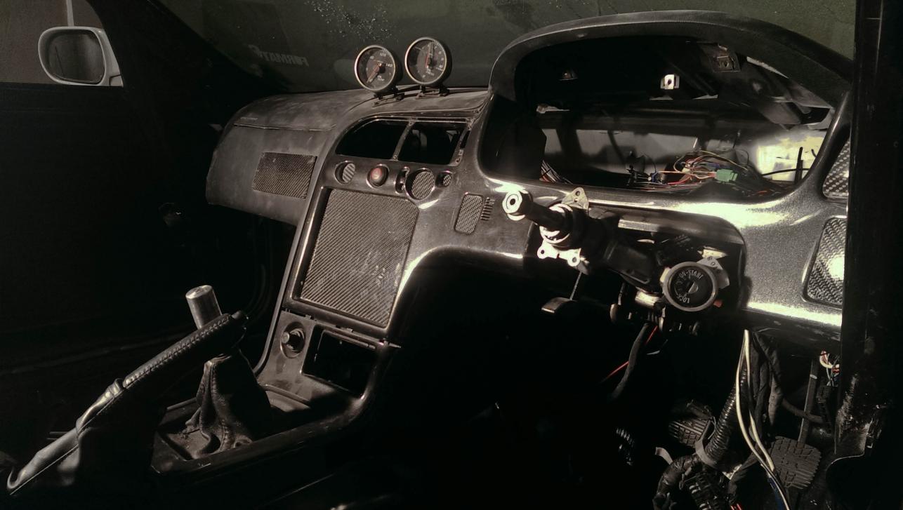 Der Innenraum ist frisch lackiert und das Amaturenbrett hat etwas mehr Carbon bekommen. Ich musste leider auf das radio verzichten, weil ich die Boxen nirgendwo mehr unterbringen konnte. Keine Hutablage und von den Türen gibt es nur noch die Aussenhaut.