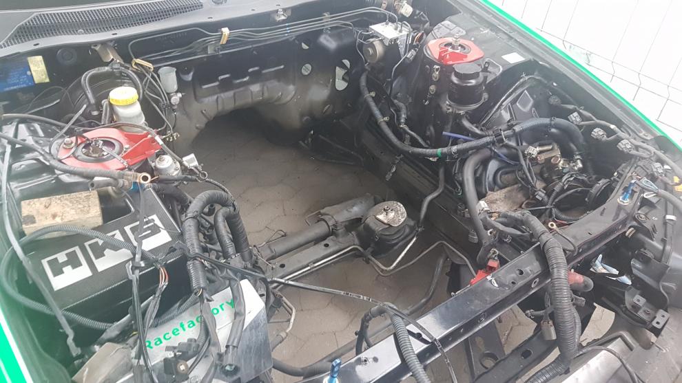 Der Wagen ist derzeit nicht fahrbereit, da der Vorbesitzer den Aufbau des RB26 unterbrechen musste und aus finanziellen Gründen diesen verkaufte. Daraufhin wurde ein Rb25 DET Neo von Daniel aka. Wellenbrecher besorgt und reingehangen. Dieser ist auch wirklich nur reingehangen, weder angeschlossen noch mit dem Getriebe verbunden.