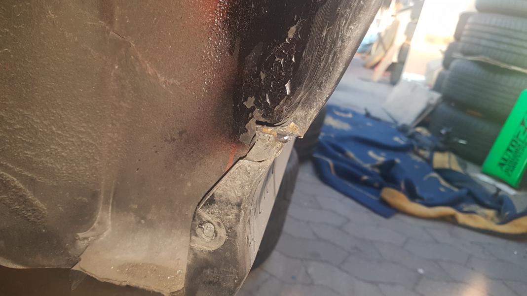 Generell muss die Verbreiterung noch abgeschlossen werden. Vorn am Radlauf und auch hinten sind immer noch Schlitze von demjenigen der das verbaut hat und man kann vom Kofferraum aus durch den Boden auf die Straße schauen.