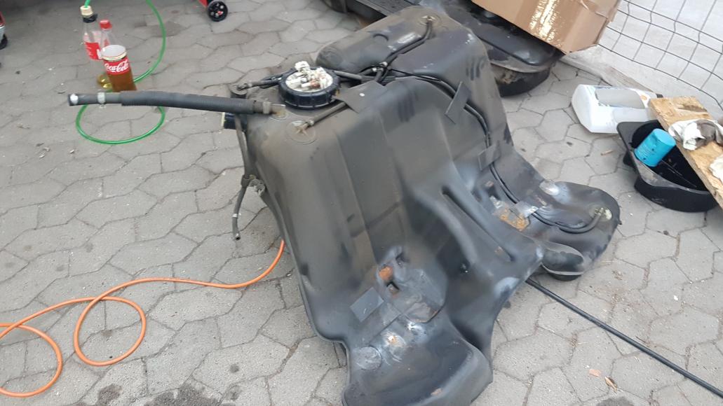 Zudem wurde der Tank mittlerweile auch entfernt. Leider stellte sich dann raus, dass der komplette Hänger im Tank fehlt. Benzinpumpe ist kein Problem da eh eine neue gekommen wäre, aber ohne den Hänger wird das nicht funktionieren, also muss dieser auch auf die Liste der zu besorgenden Teile