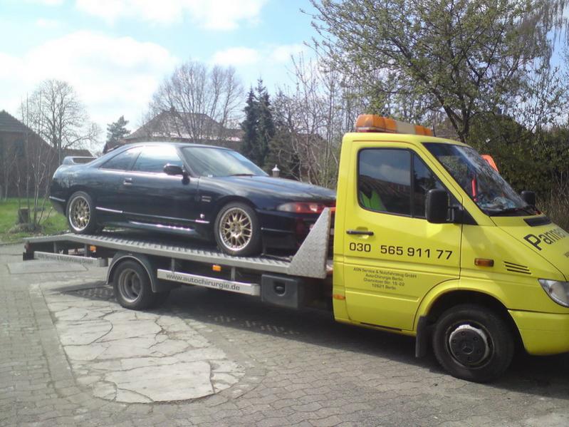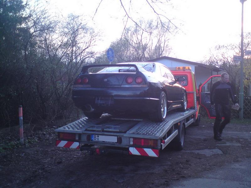 Nach ein paar Stunden kam die Erlösung. Also haben wir den Skyline auf den Trailer verfrachtet und weg war er...erstmal