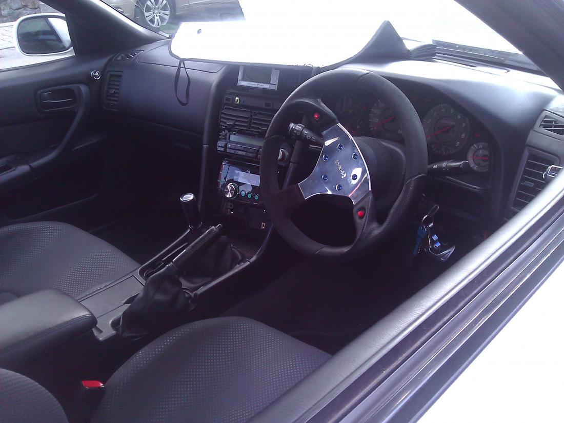Mittelkonsole wird grad komplett mit echt carbon verkleidet, blaue sparco gurte, R34 MFD, Rücksitzbank Türen und Himmel Schwarzes Alcantara und ein Shiftlight an der a-Säule das war's erst mal =)