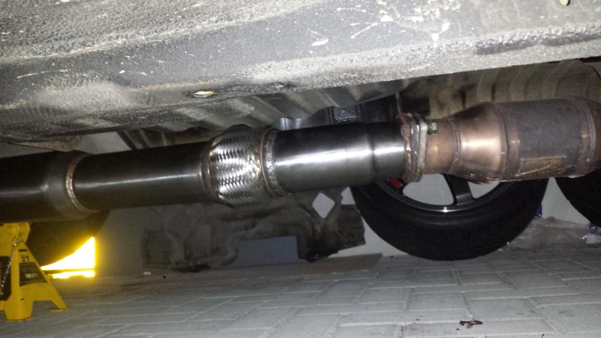 Zusätzlich habe ich noch ein Flexrohr einschweisen lassen, da die Abgasanlage doch recht unter Spannung stand und dadurch an manchen Verbindungen kleine Leckagen entstanden: