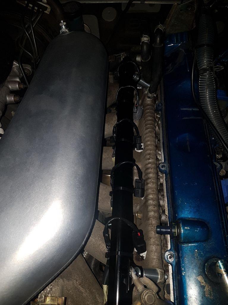 Zu den Topfeed Düsen muss man allerdings sagen, dass ich Düsen vom R35 bestellt habe. Diese sind eine 3/4 length Ausführung von den Bosch EV14 und somit allgemein kürzer, eben ca. 25%. Dadurch passt das alles. Laut Plazmaman passen full length injektoren hier nämlich auch nicht, aber darauf wurde auf der Website hingewiesen und ich konnte mich darauf also einstellen.