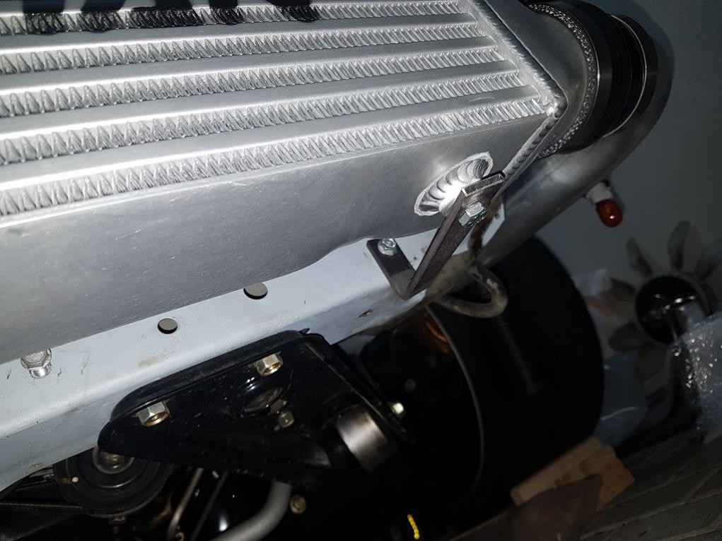 Für den Ladeluftkühler ist ein passender Halter dabei. Lediglich für unten muss etwas gebaut werden, aber alles halb so wild.