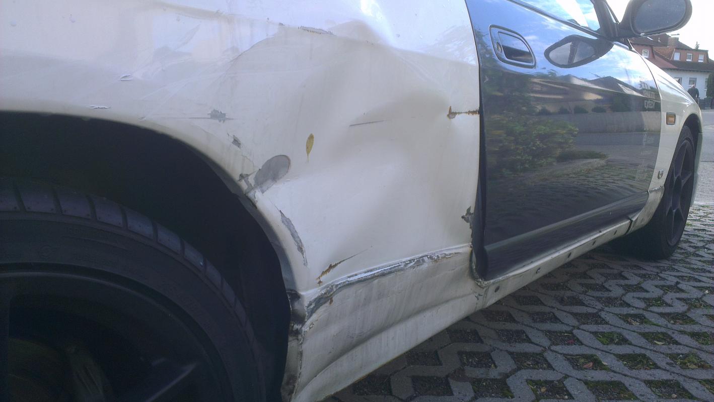 ich hatte nach Reisbrennen einen Unfall (mir ist das Heck am Ende eines Kreisels ausgebrochen und ich konnte ihn nicht mehr fangen und bin zuerst mit der rechten front und dann mit der kompletten rechten Seite in einen Zaun rein). Die Anbauteile wie Stoßstange,Scheinwerfer, Kötflügel, Tür und Seitenschweller hab ich schon neu geholt (bzw. gebraucht). Die Achse hat auch irgendwas abbekommen, was weis ich aber noch nicht genau. Nun zu meiner eigentlichen Frage, ich möchte einfach eure Meinung mal wissen ob ich das ausbeulen lassen soll oder doch eine neue Wand reinschweißen lassen soll (was aber ja ziemlich schwierig erscheint überhaupt diese zu bekommen)?!