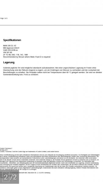 Leider finde ich keine Infos über Spezifikation das einzige was ich gefunden habe ist das ,,Matic D,, Öl rein soll sind aber angaben von Nissan laut andere Forums