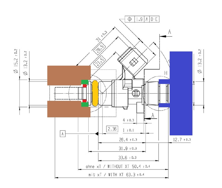 Der untere Bund hat immer 13.2mm das stimmt. Bei mir liegt die Fuel Rail auf diesem Bund auf. Als quasi oberer Anschlag damit ich sie in die untere Dichtung am Kopf mit dem verschrauben der Fuel Rail drücken kann.
