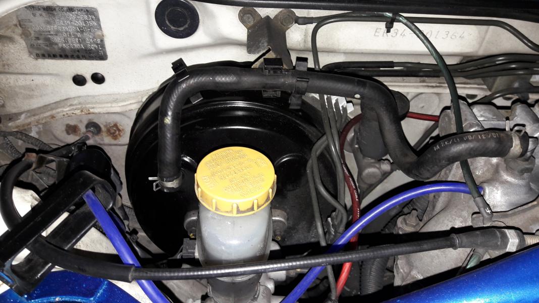 Einen Schlauch habe ich enddeckt sieht man auf dem Bild der blaue dünne vor dem Bremskaftverstärker konnte ich was hören..