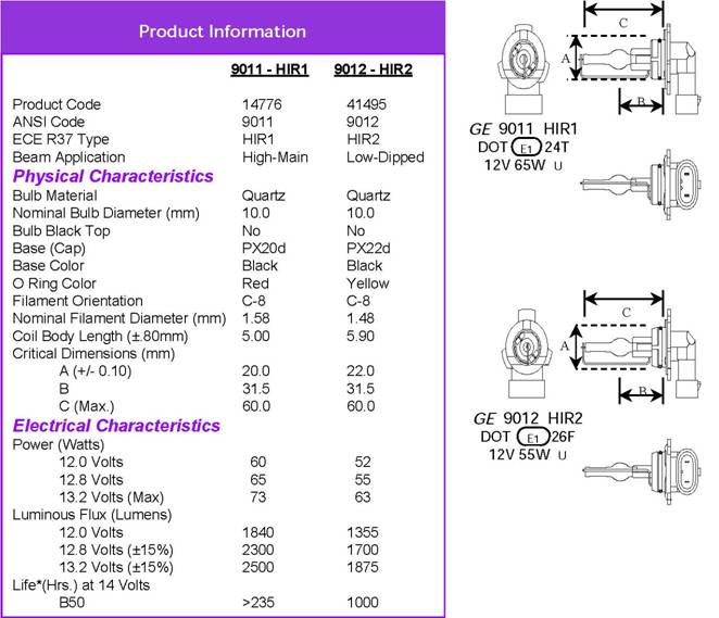 Hier noch ein Infoblatt zu der 9011/HIR1 Lampe
