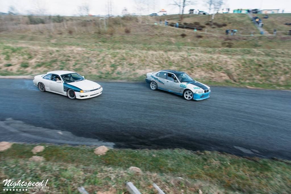 Am Sonntag wurde die S14 dann zum ersten Mal seit dem Import wieder (artgerecht) bewegt. Die neue Kupplung fährt sich sehr angenehm und bis auf die 25er Visco-Sperre driftet sich die Flunder echt gut. Lediglich ein wenig mehr Lenkwinkel und 'ne hydraulische Handbremse wären wünschenswert.
