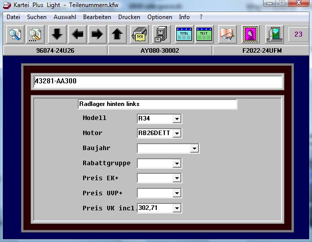 Damit ich endlich mal Ordnung in mit meinen zich Skylineersatzteilnummern bekomme suche ich ein Freeware Programm z.B Ersatzteilstamm oder was ähnliches was man nutzen kann. Alternativ würde auch ein Karteikartenprog gehen. Hab zwar Exeltabelle aber das ist zu umständlich.