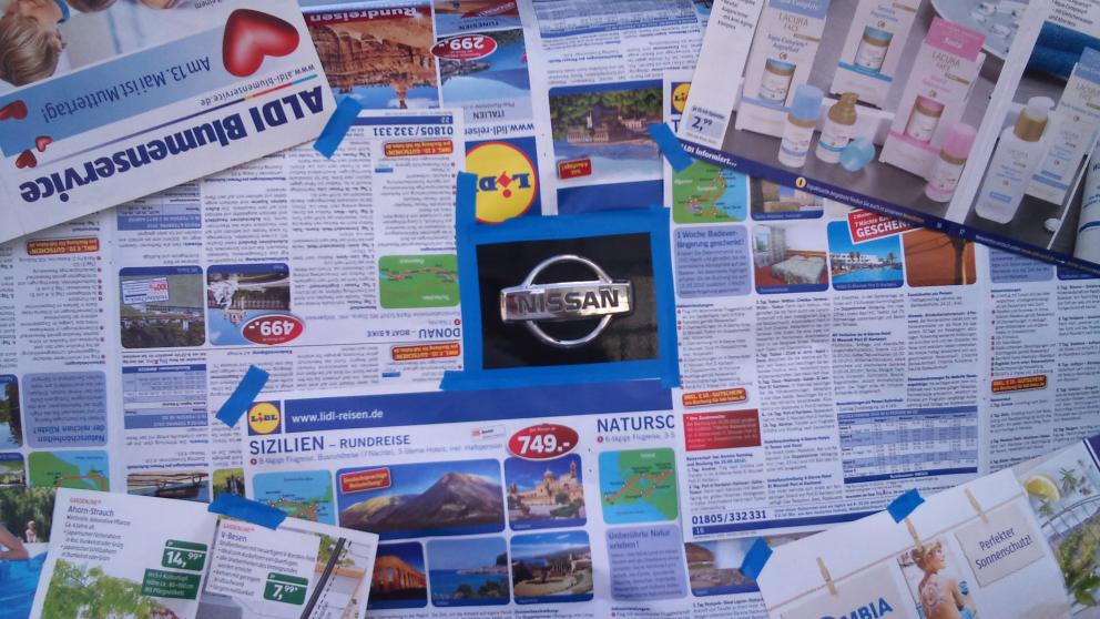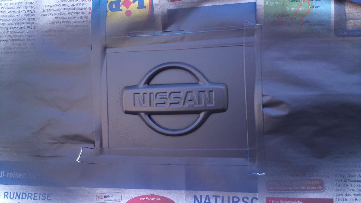 Als erstes hab ich mich am Nissan Logo an der Heckklappe vergriffen: