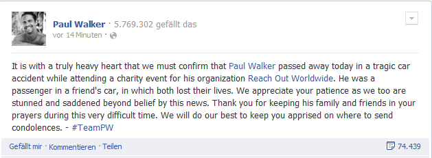 R.I.P. Er war nicht nur ein sehr guter Schauspieler sondern auch ein guter Mensch, der sich unglaublich für andere eingesetzt hat. Ironischer Weise ist er leider auf dem Weg zu einem Charity Event für die Opfer auf den Philippinen ums Leben gekommen. Unglaublich :(