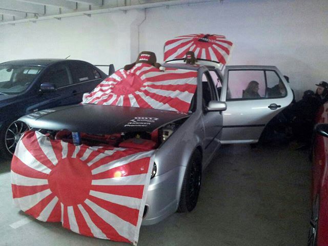 Wenn er Japan Fan bzw. Fan der Szene ist warum nicht ? Aber sobald er sich gtr badges aufs Auto knallt, sollte man ihm vielleicht sich sagen, dass das etwas zu weit geht :).