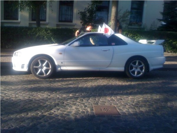 Mein SKY hat passend die Spiegelcover drüber (muss noch die japanischen finden, für andere Events) und 2 große Fahnen , welche 2 Kollegen raushielten...das zum schwarzen SKY und OHNE Silencer mit Wohlwollen der überall anwesenden Streckenpatroullie.